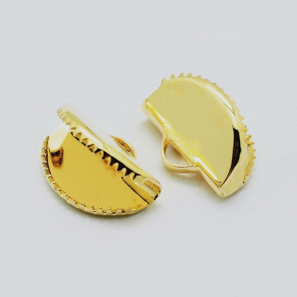 Iron Half Round Iron Ribbon Crimp End - 10pcs