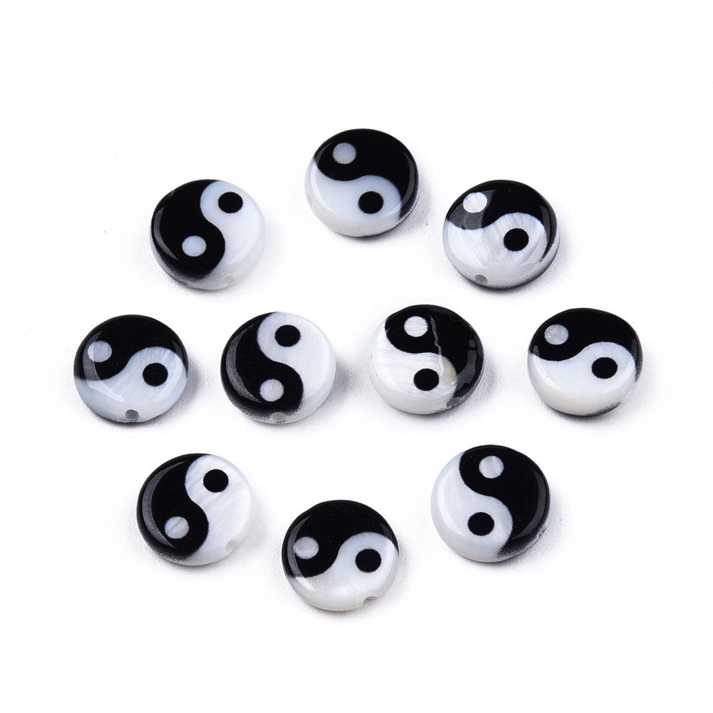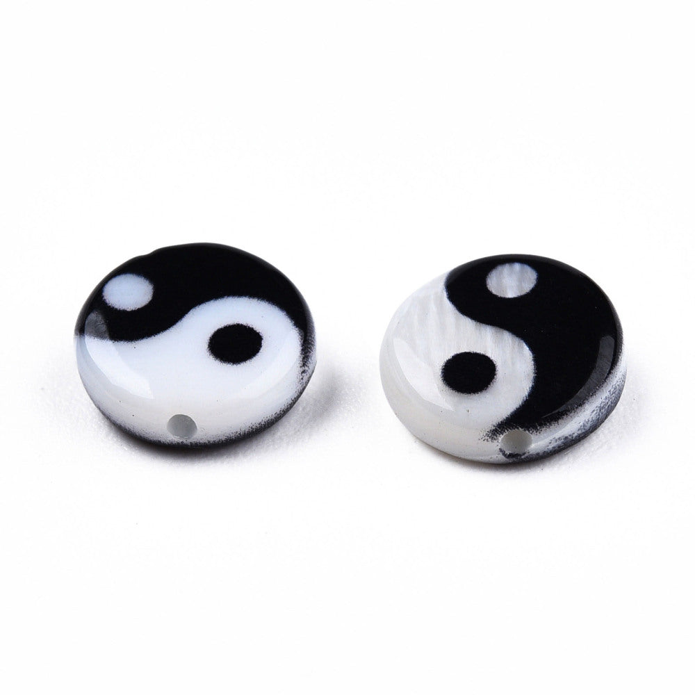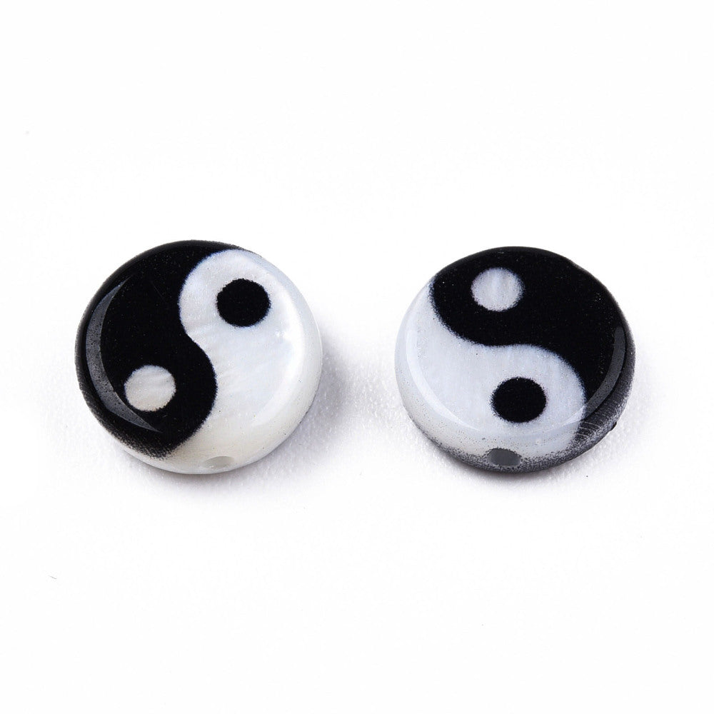 Natural Freshwater 8mm Yin Yang Printed Spacer Bead - 4Pcs