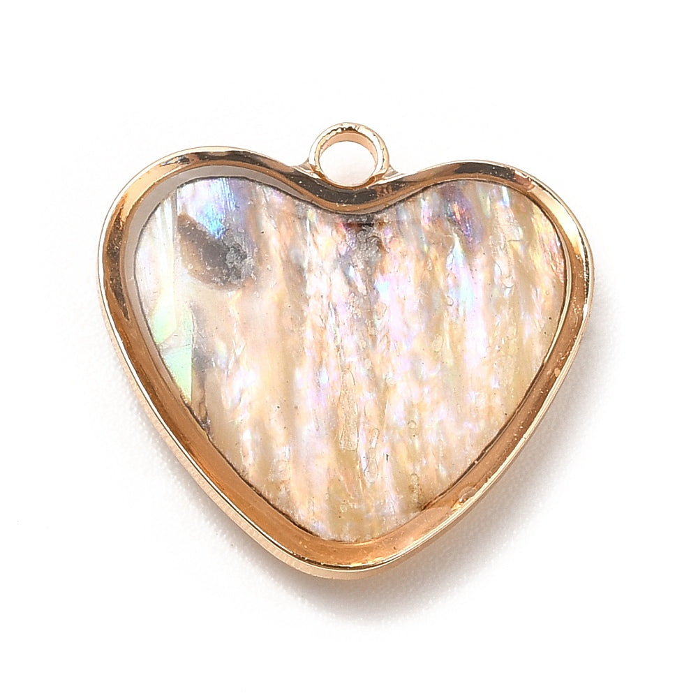 14KT Gold Plated Abalone Shell Imitation 15mm Heart Pendant - 2Pcs