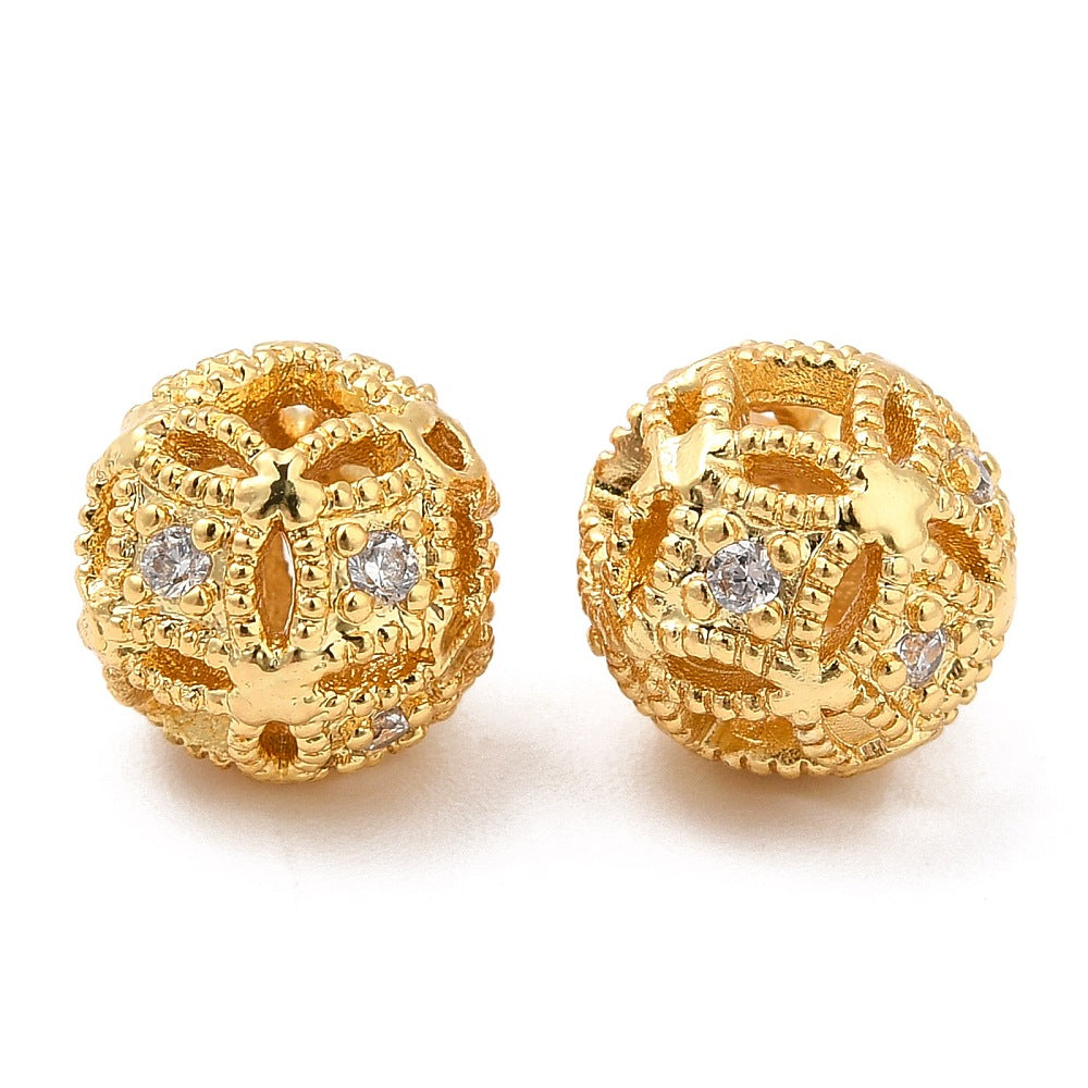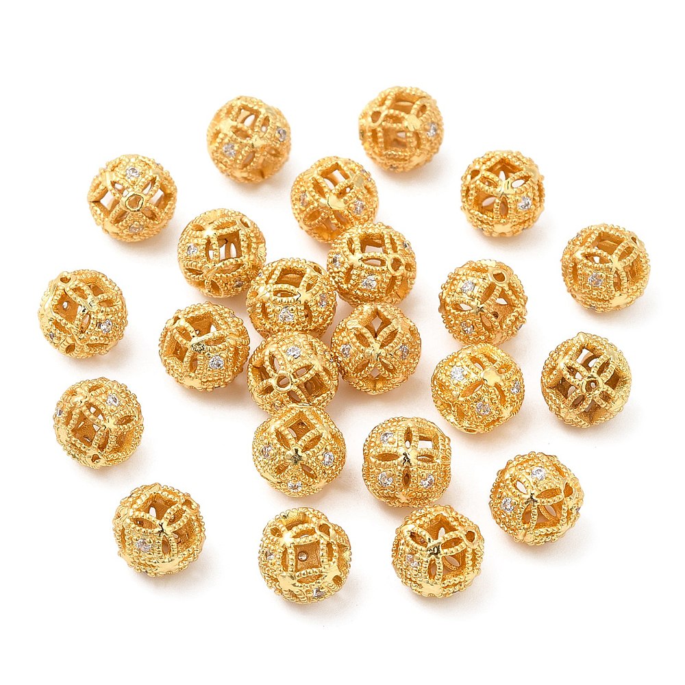 18KT Gold Plated 8mm Brass Micro Pave Cubic Zirconia Bead - 2Pcs