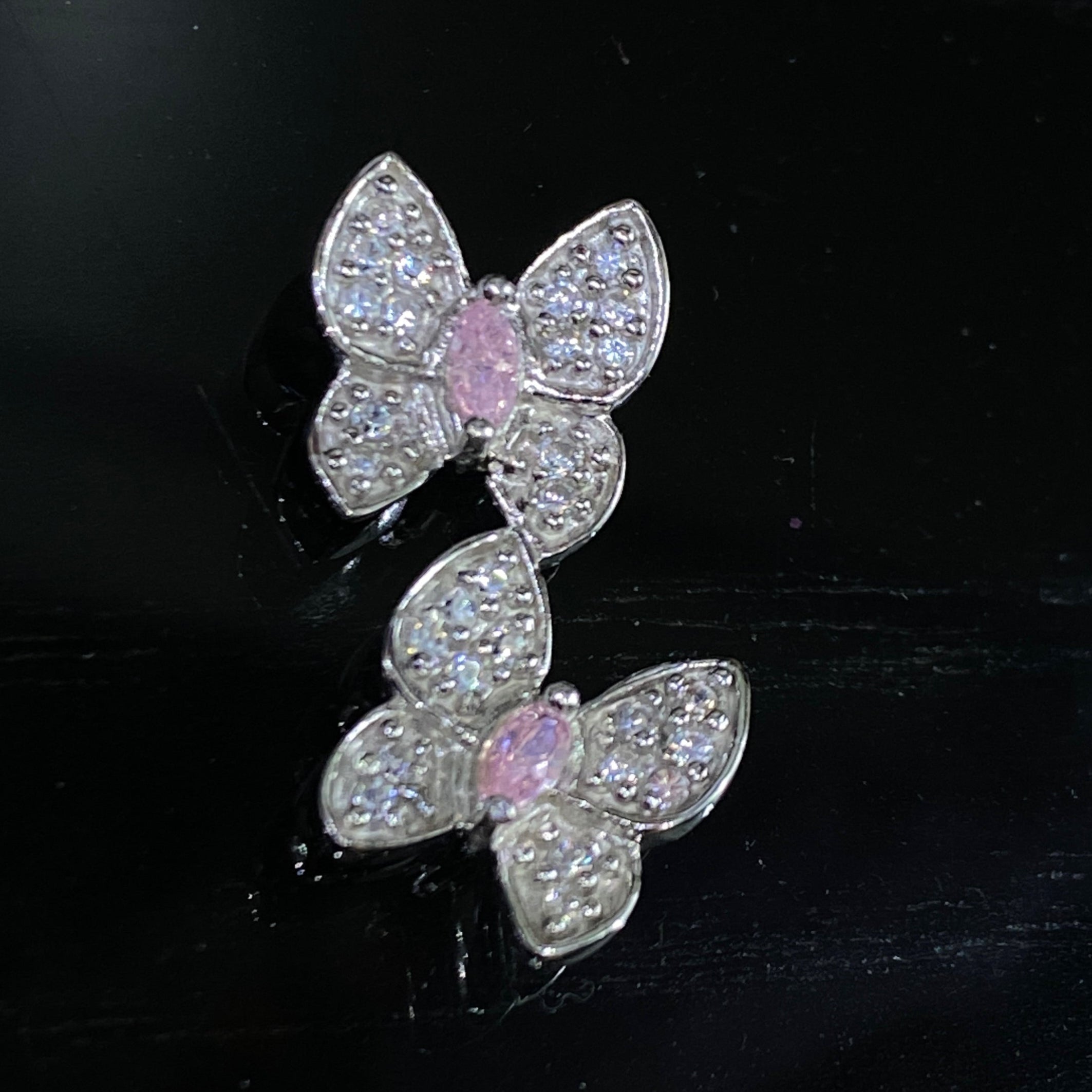 .925 Sterling Silver 24mm Double Butterfly with Pink Cubics Pendant