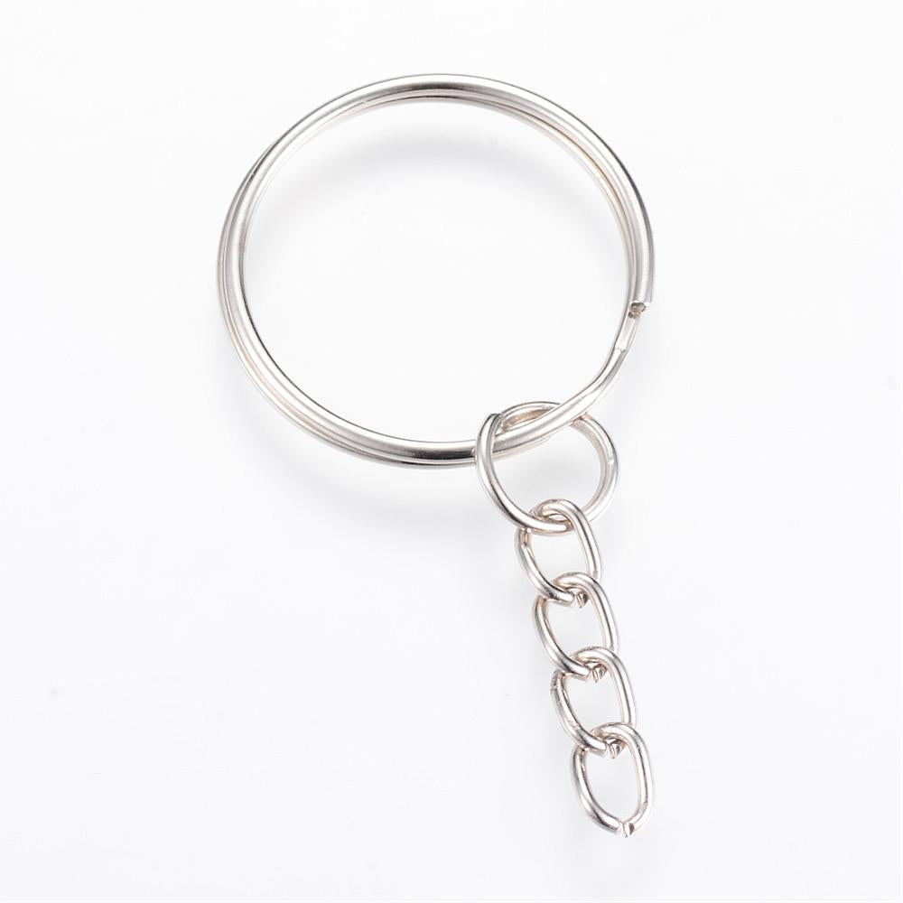 Beadazzle 24mm Silver Iron Split Ring with Keychain - 10pcs/pack