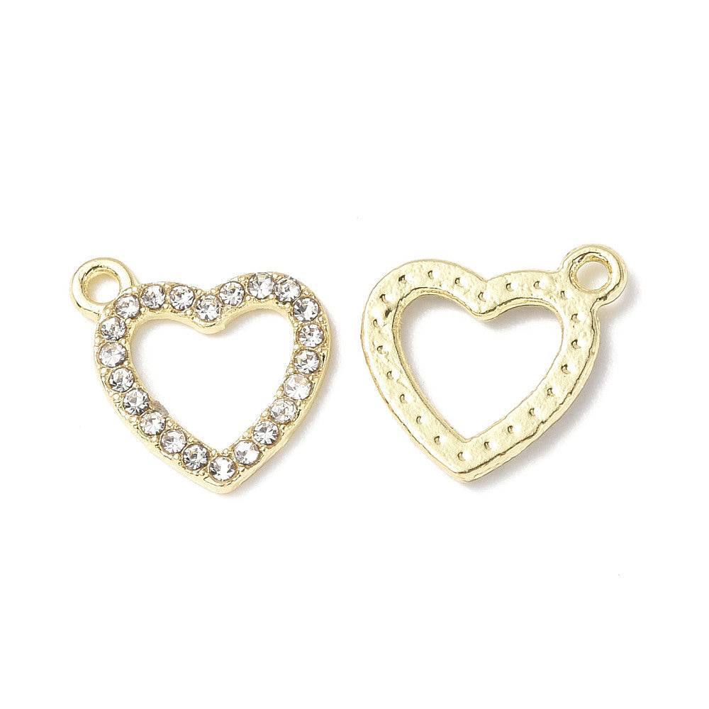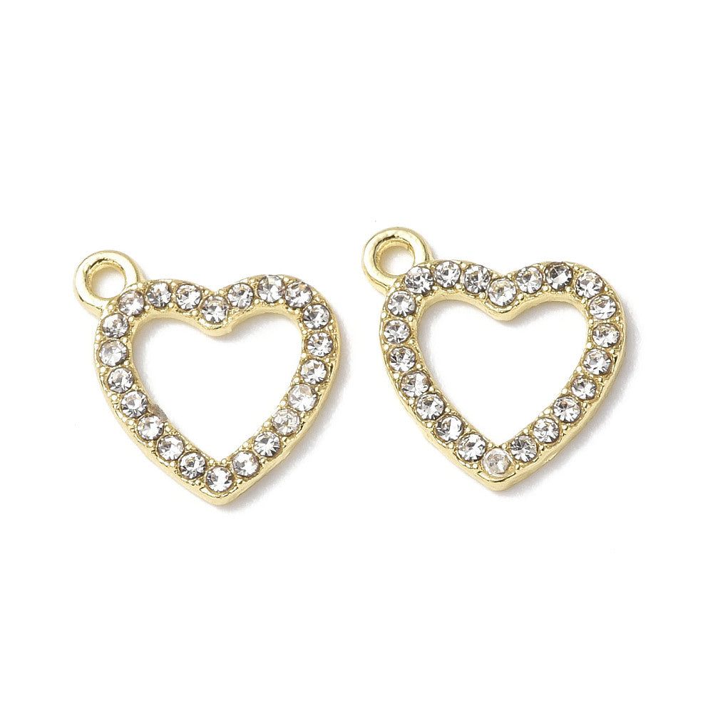 Beadazzle Findings 12x10mm Light Gold Heart with Rhinestones Pendant Charm - 5Pcs