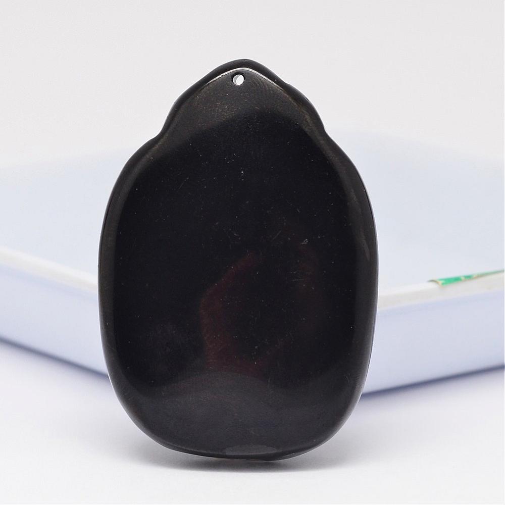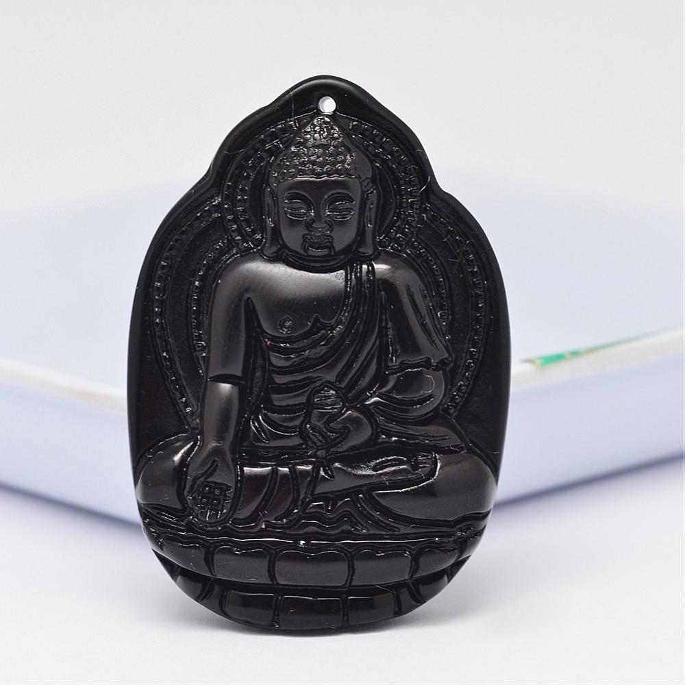 Natural Black Obsidian 52x36mm Buddha Pendant