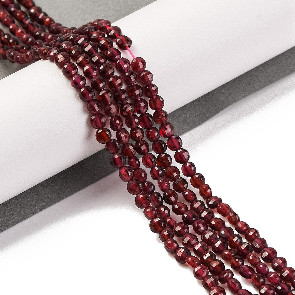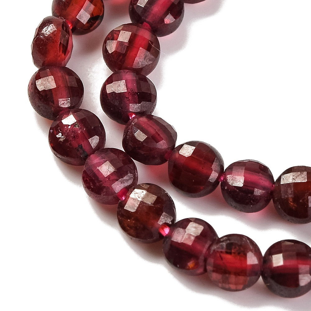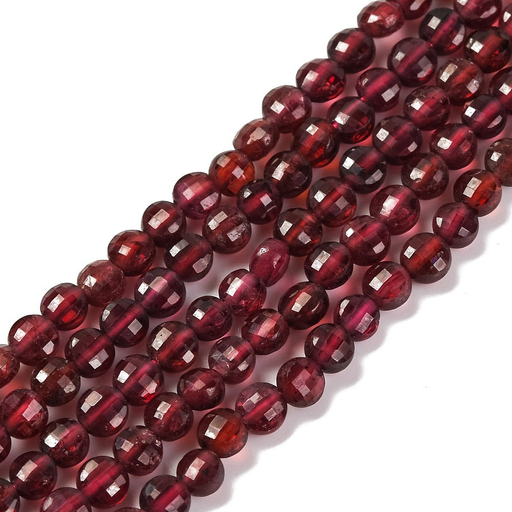 Natural Gemstone Faceted Garnet 4mm Coin Bead Strand #10-29C