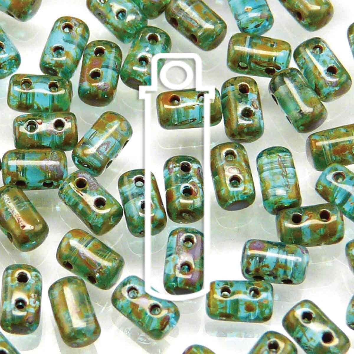 Rulla 3x5mm Czech Glass Beads - Aquamarine Dark Travertine 86805