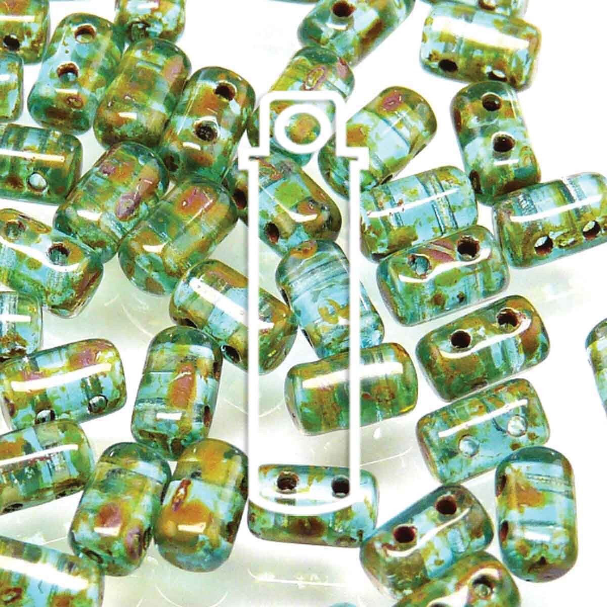 Rulla 3x5mm Czech Glass Beads - Aquamarine Travertine 86800
