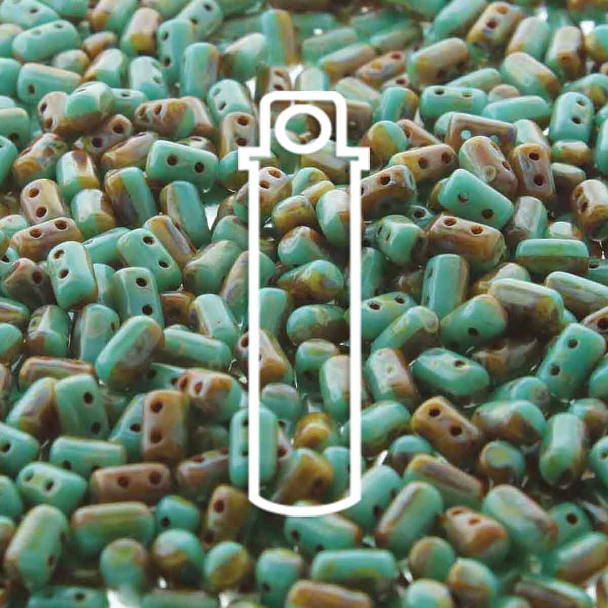 Rulla 3x5mm Czech Glass Beads - Duets Green Turquoise Dark Travertine 86805