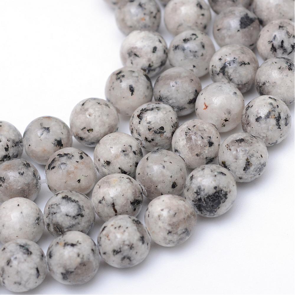 Bargain Wall White Sesame Kiwi Jasper Natural Gemstone Bead Strand