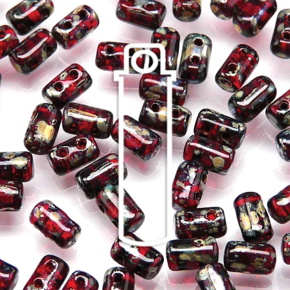 Rulla 3x5mm Czech Glass Beads - Ruby/Picasso 43400