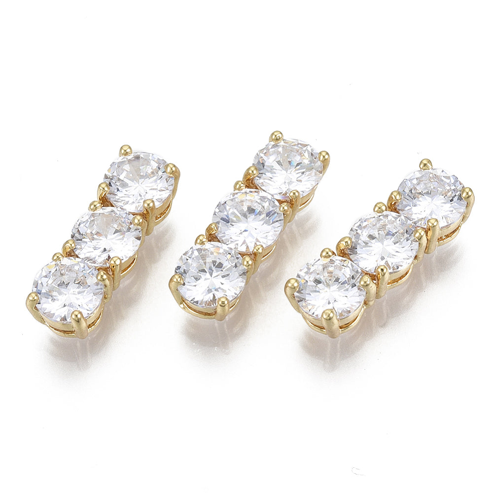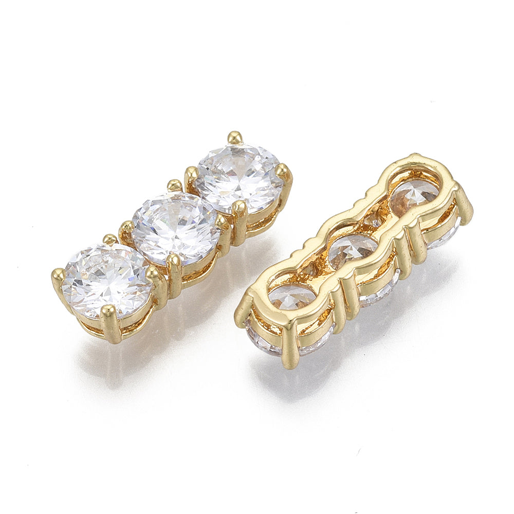 18KT Gold Plated Micro Pave Cubic Zirconia 3-hole Spacer Bar - 1pc
