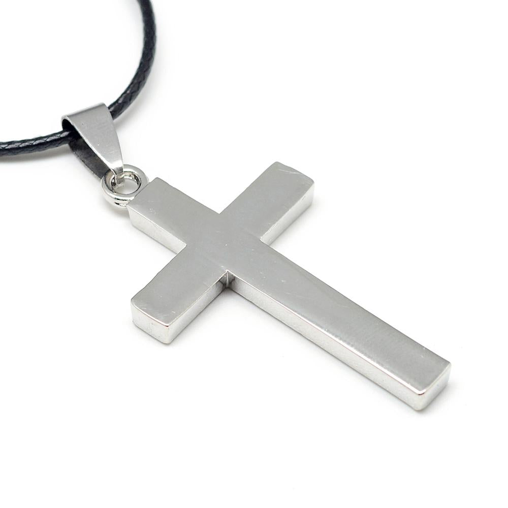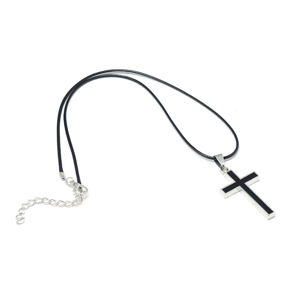 Beadazzle 40x24mm Black Enamel Cross Pendant with Waxed Cord Necklace - 1Pc