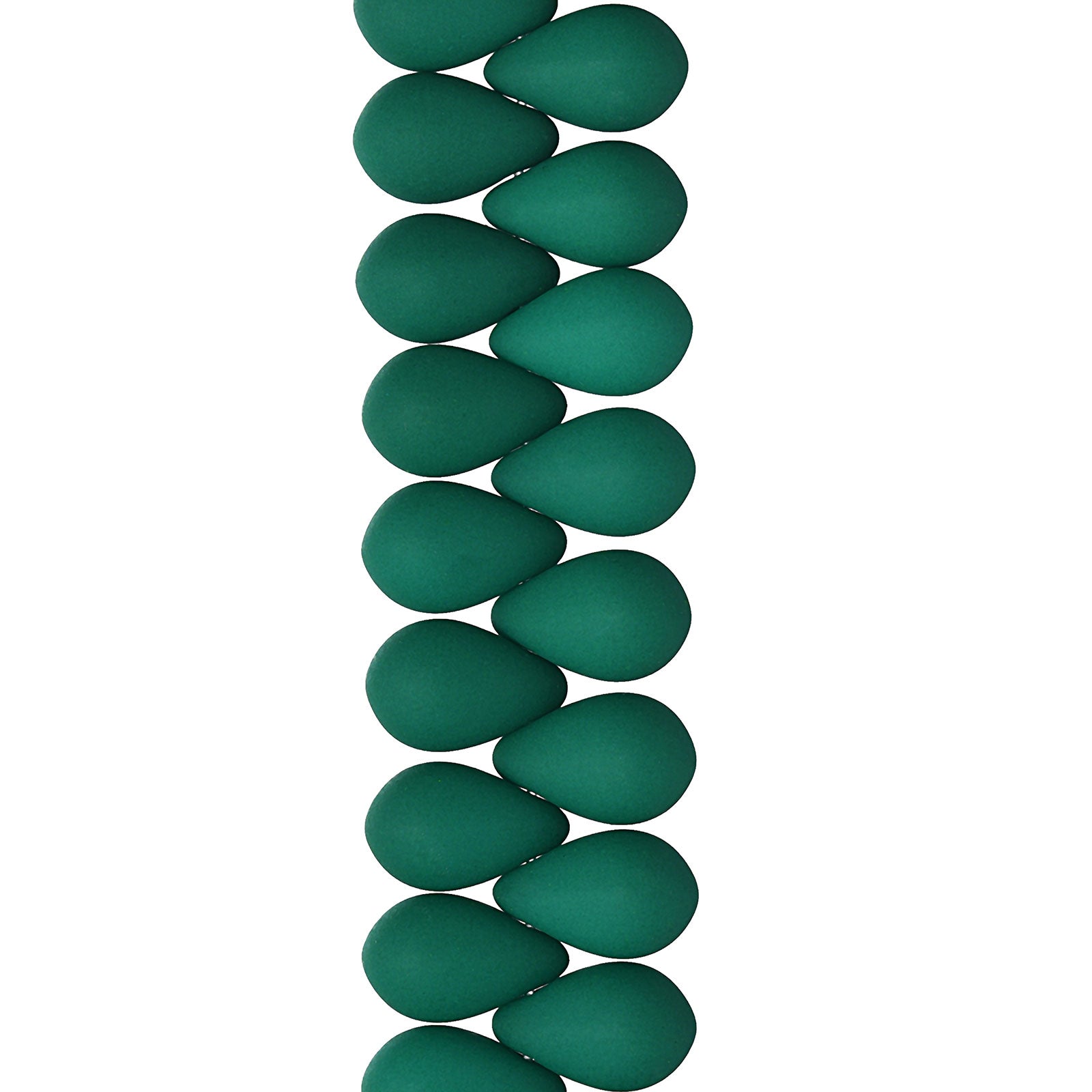 Czech Glass 6x9mm Teardrop Bead Strand White Alabaster Velvet - Petrol Green