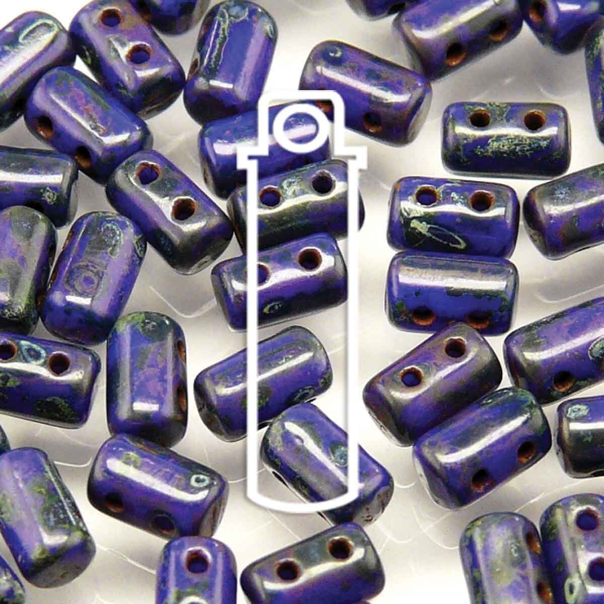 Rulla 3x5mm Czech Glass Beads - Opaque Blue Dark Travertine 86805