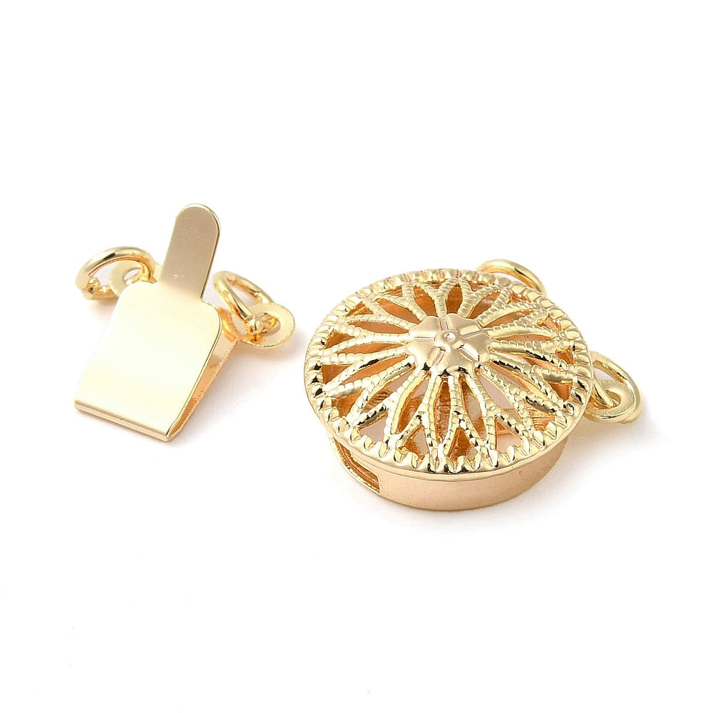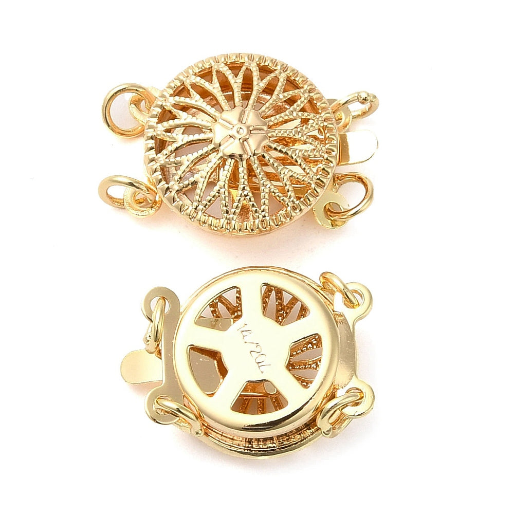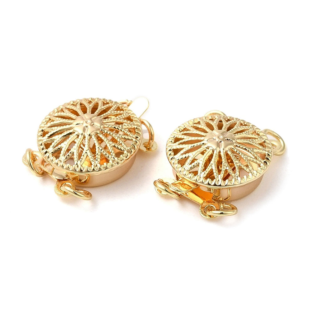 18KT Gold Plated 2-strand 12mm Flower Fancy Box Clasp - 1Pc