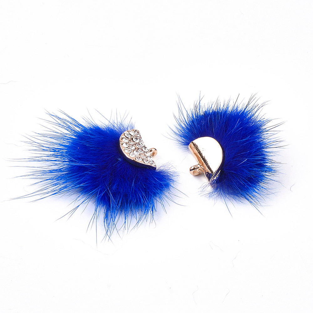 Beadazzle Faux Fur 25mm Pom pom with Crystal Rhinestone Golden Pendant - 2Pcs