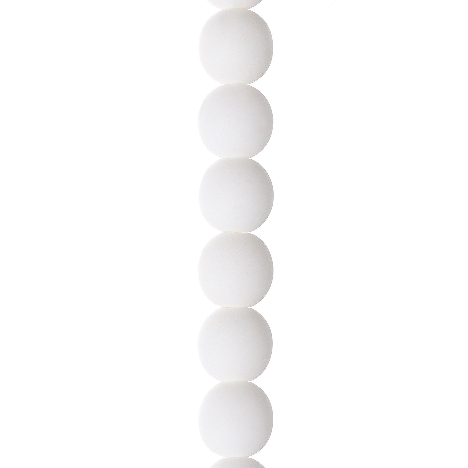 Czech Glass Round Bead Strand White Alabaster Velvet - White