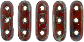 CzechMates 10x3mm Beam Beads - Opaque Red Picasso T9320