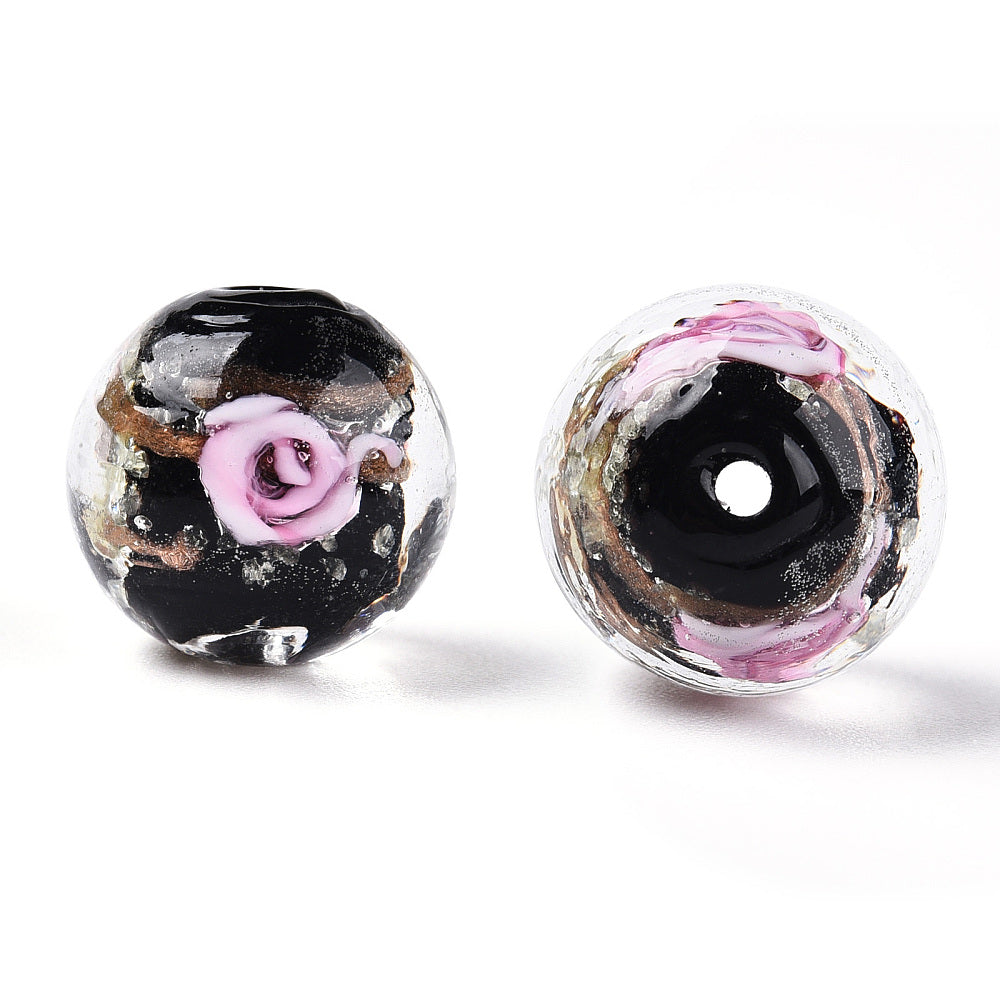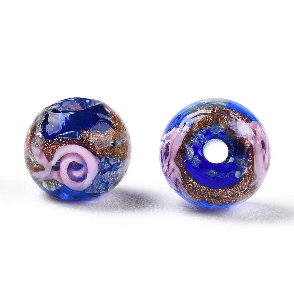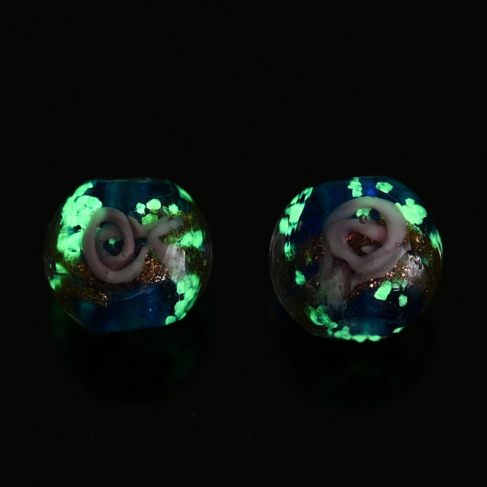 Handmade Gold Sand Lampwork 10mm Glow in the Dark Spacer - 4pcs