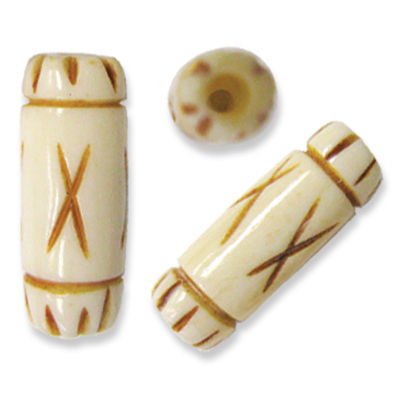Natural Bone 1" Hand Carved Antique Barrel Beads - 50pcs/pack