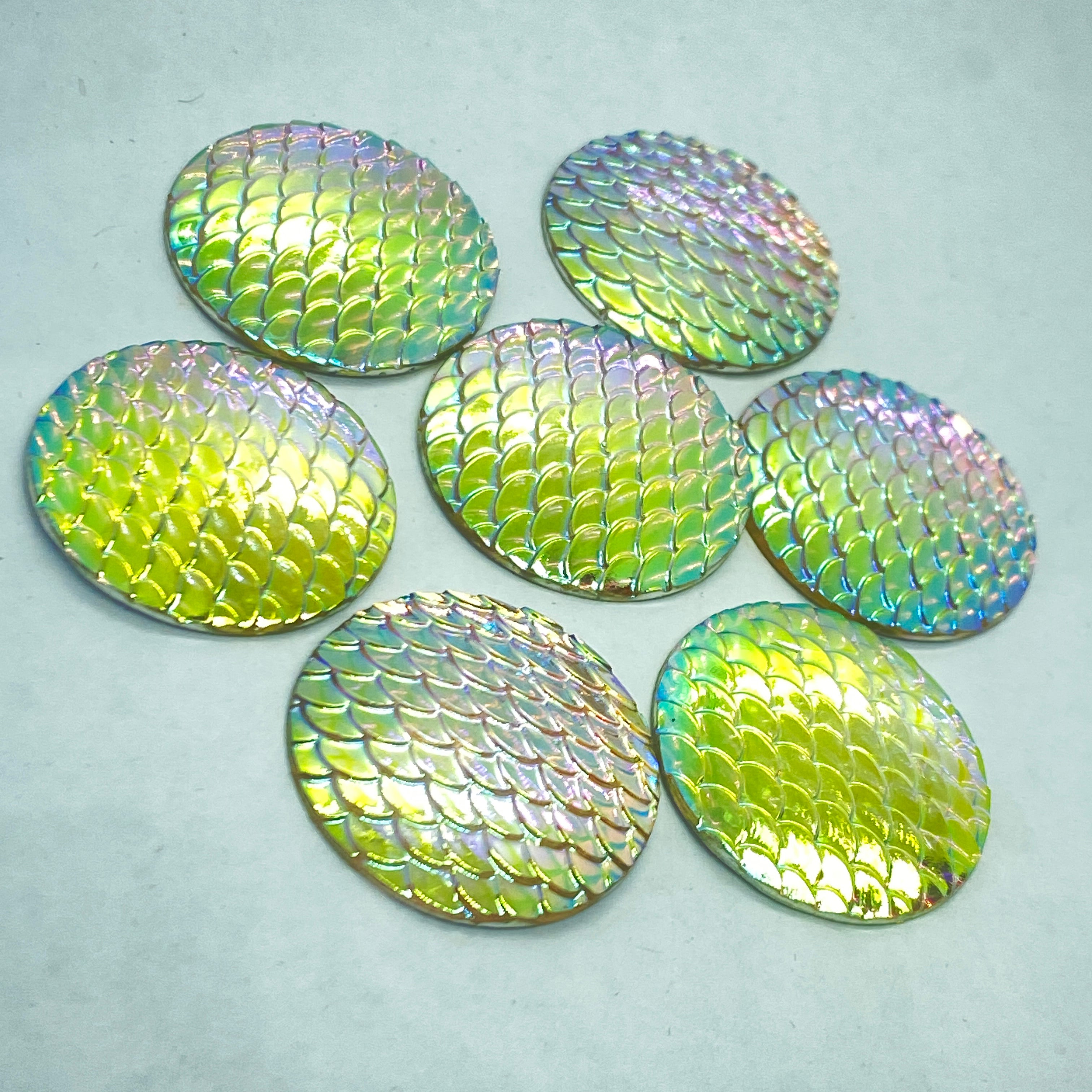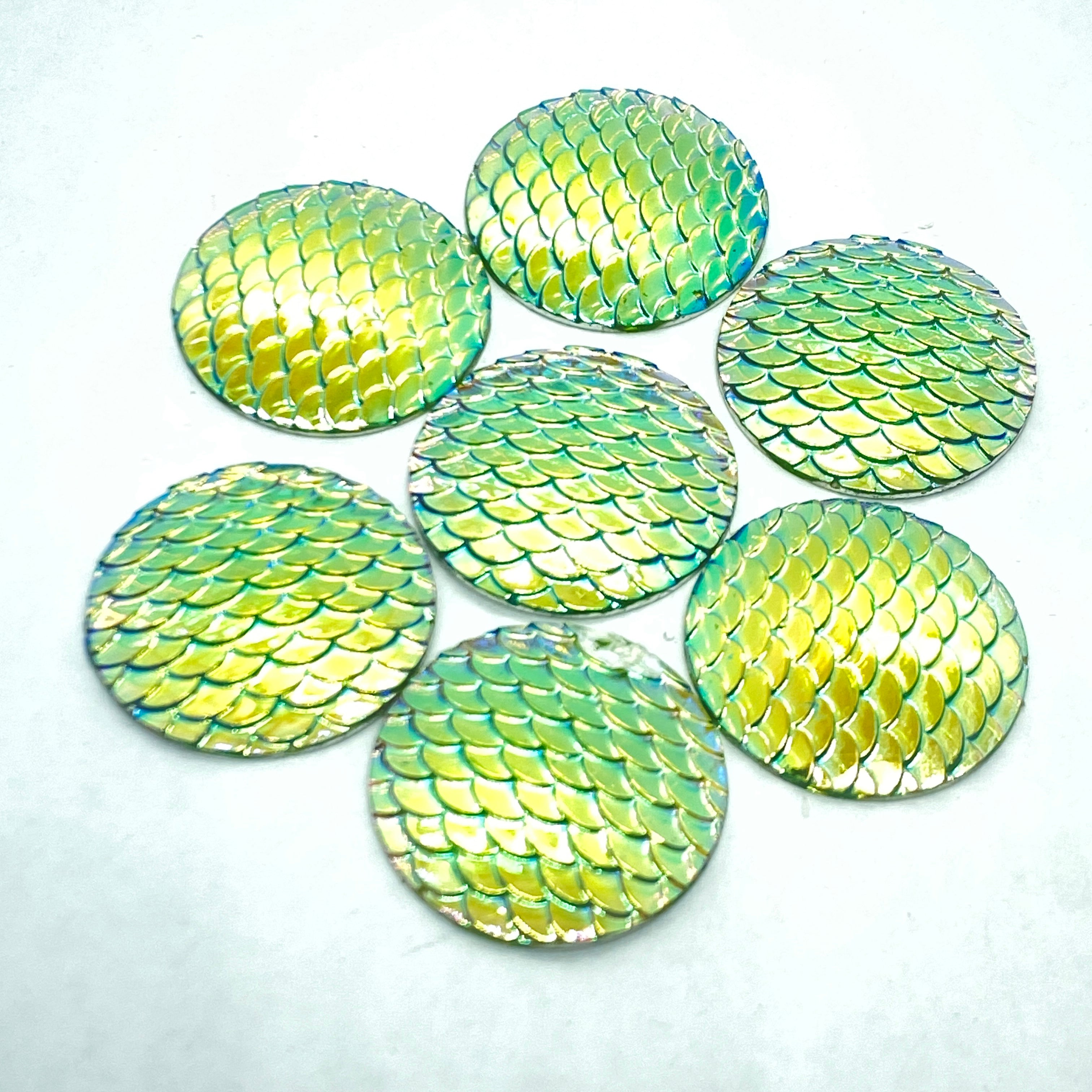 25mm Round Mermaid Fish Scale Resin Cabochons - 10pcs/pack