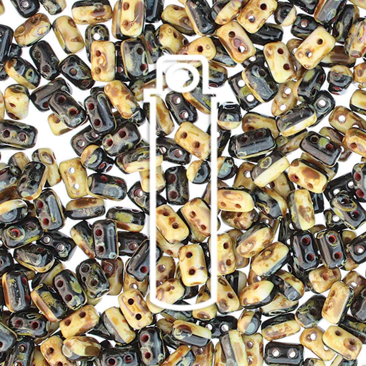 Rulla 3x5mm Czech Glass Beads - Duets Black/White - Dark Travertine 86805