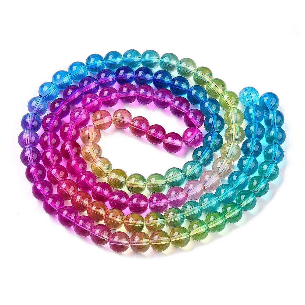 Beadazzle Baking Painted Multicolor Rainbow 8mm Glass Beads - 100Pcs
