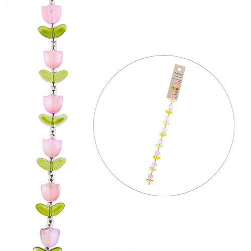 Crystal Lane DIY 14x16mm Tulip Flower 7in Bead Strand - 9pcs