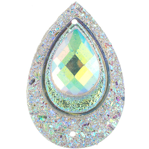 Resin Sew-On Peacock Stone 20x30mm Drop Crystal AB 10pcs