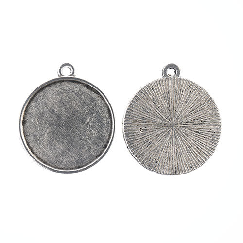 John Bead Round Pendant Frame and Dome Ant Silver 22mm 3pcs