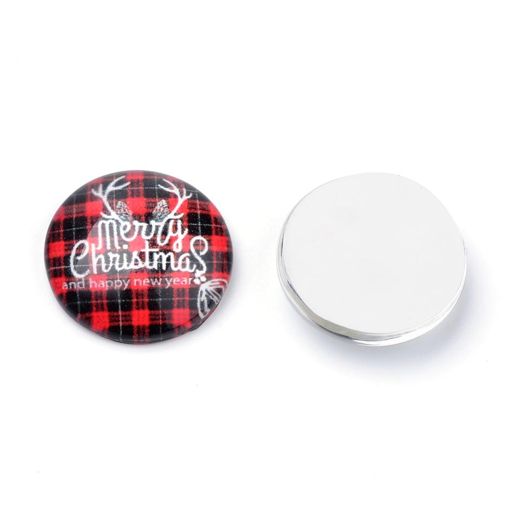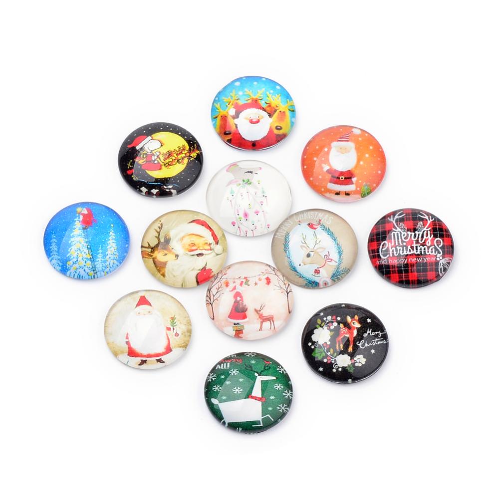 25mm Glass Christmas Assorted Flatback Round Cabochon - 10Pcs