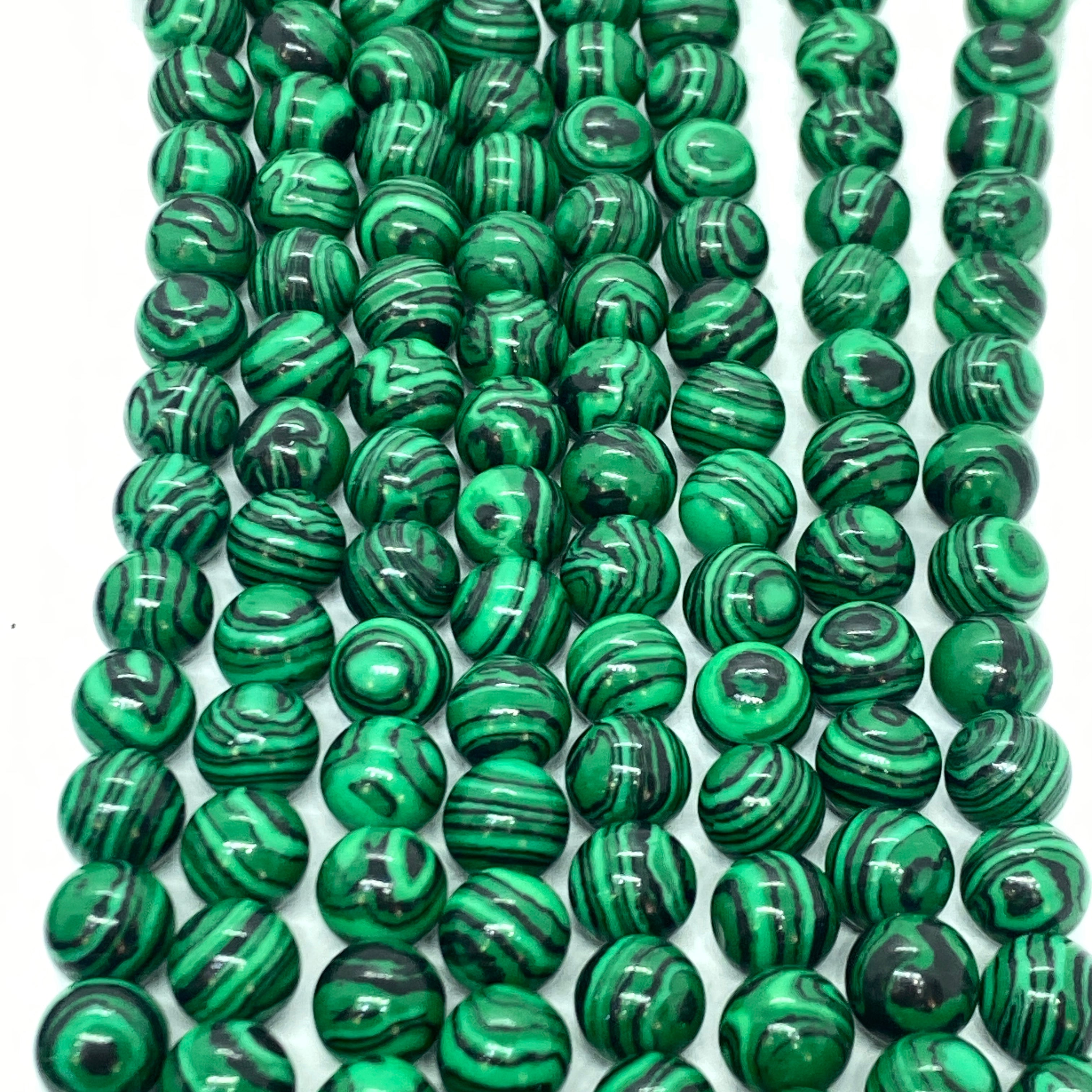 Black Lace Malachite Gemstone Bead Strand