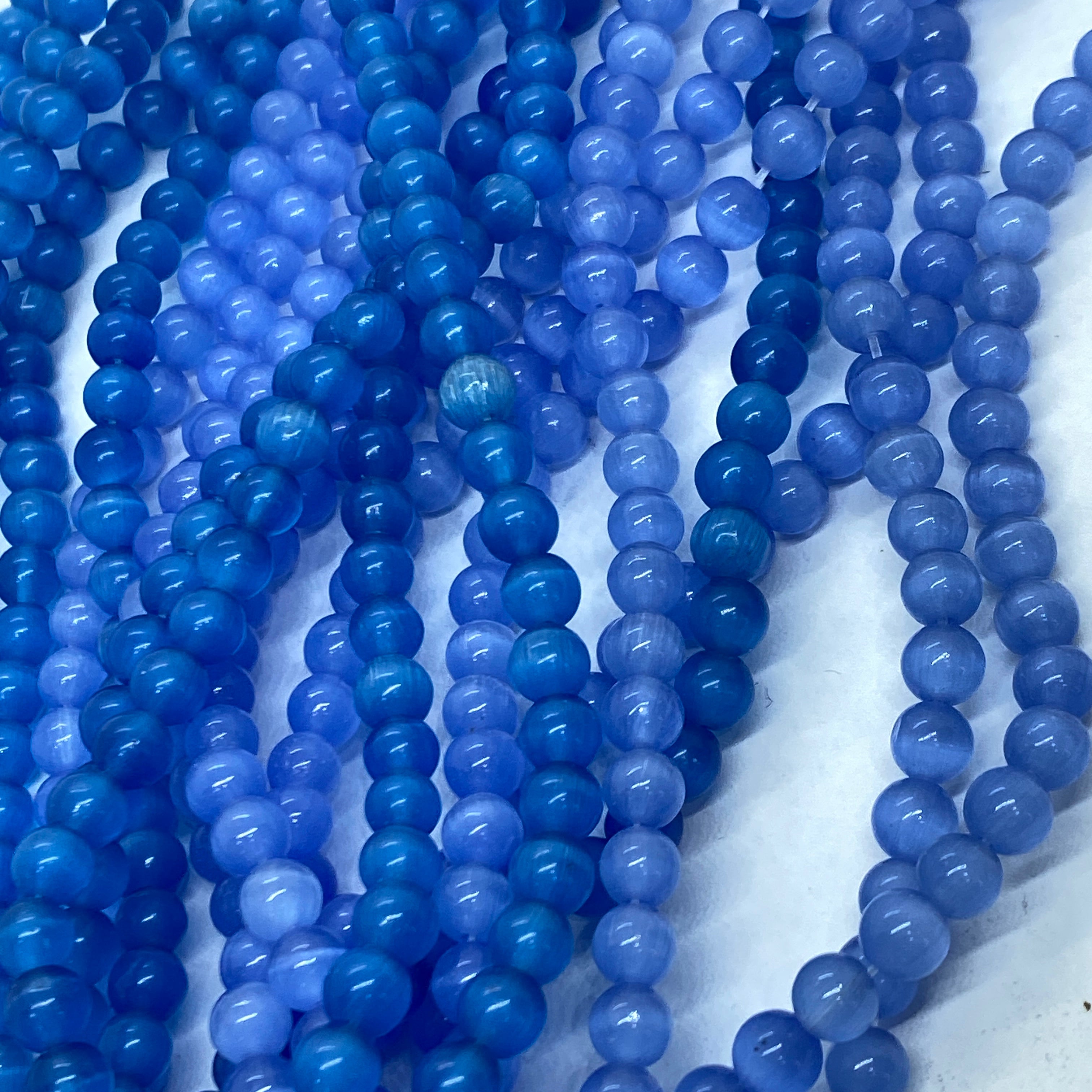 CATS EYE DYED CREATED MEDIUM BLUE BEADS