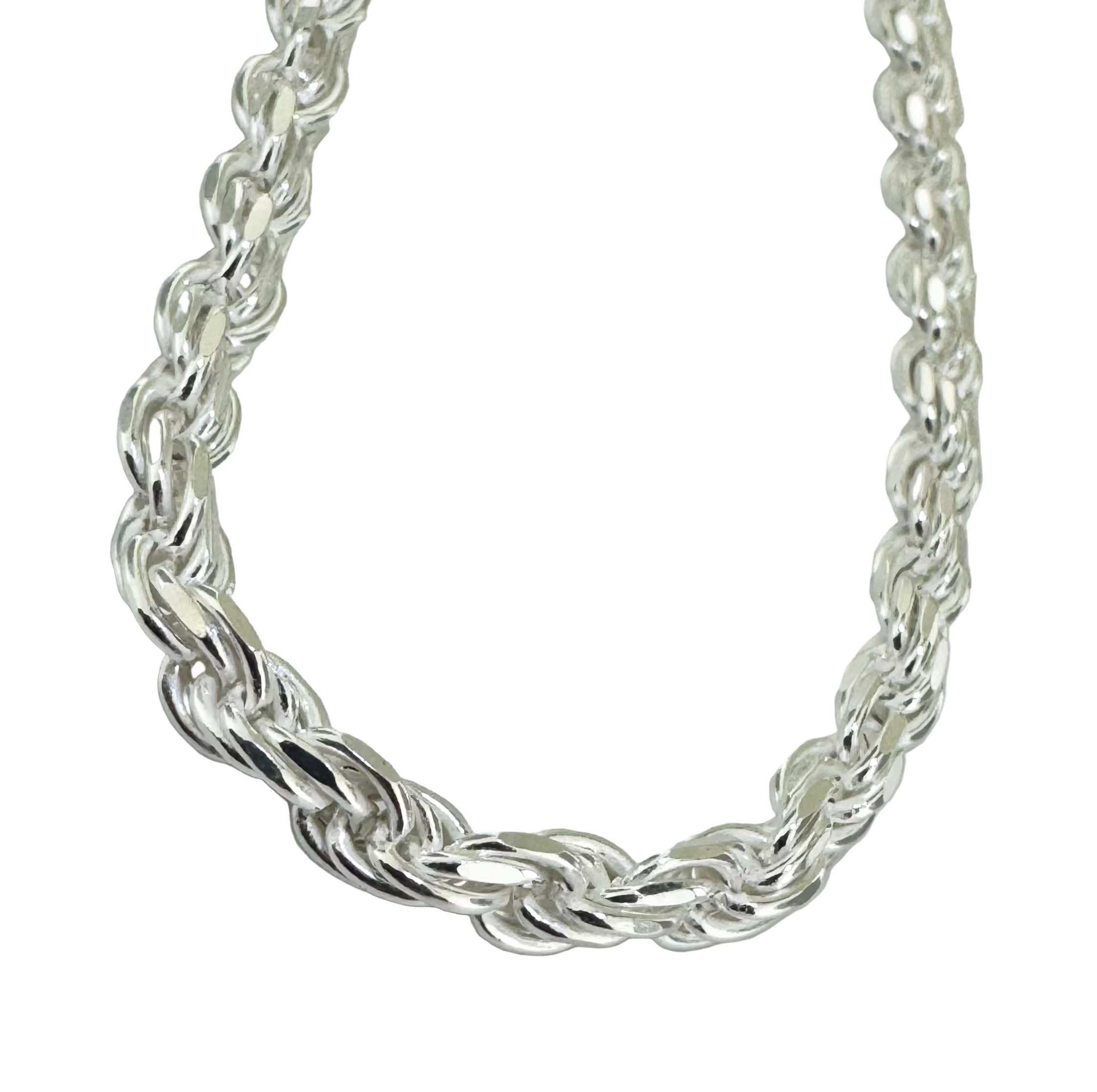 Sterling Silver .925 Smooth Diamond Cut Rope Chain