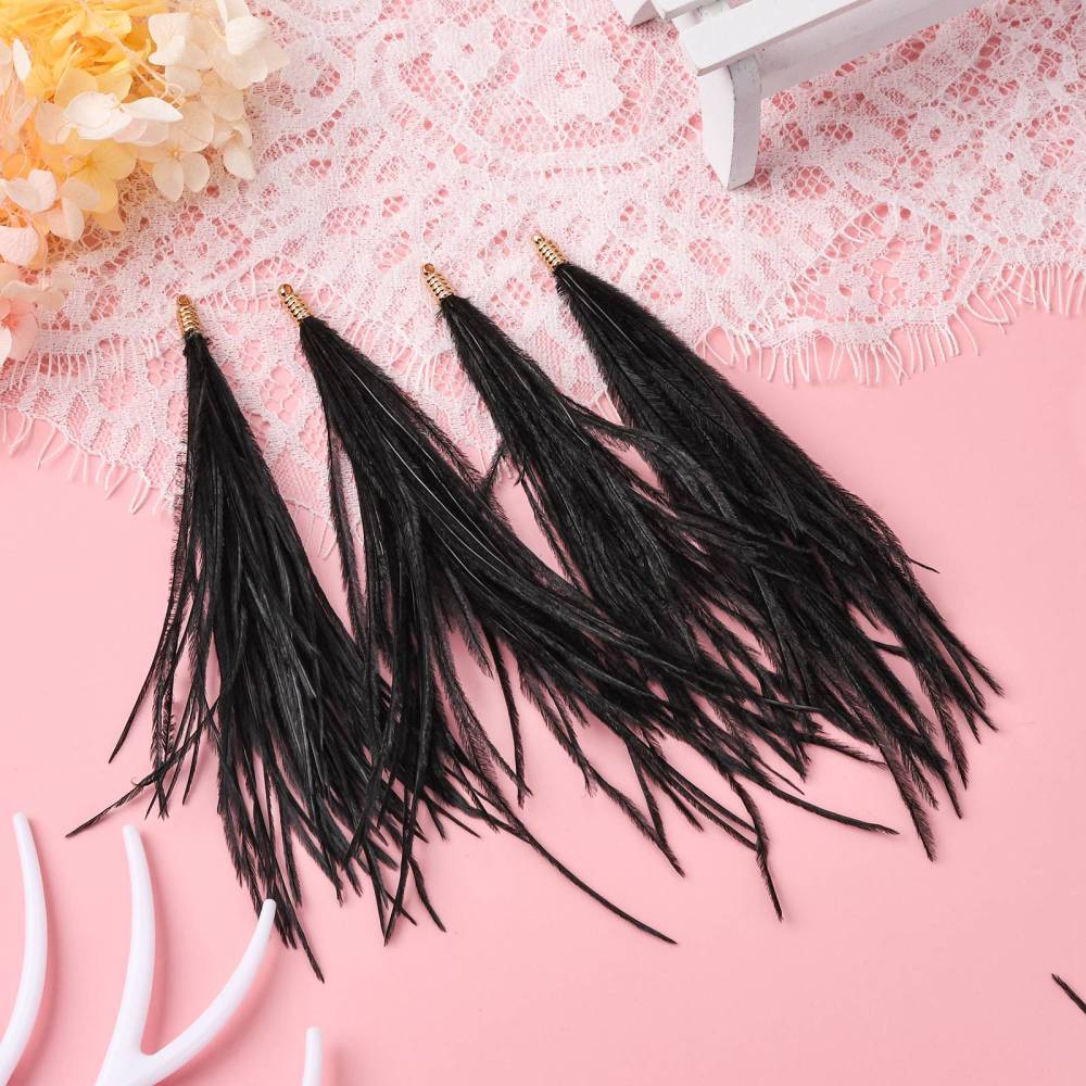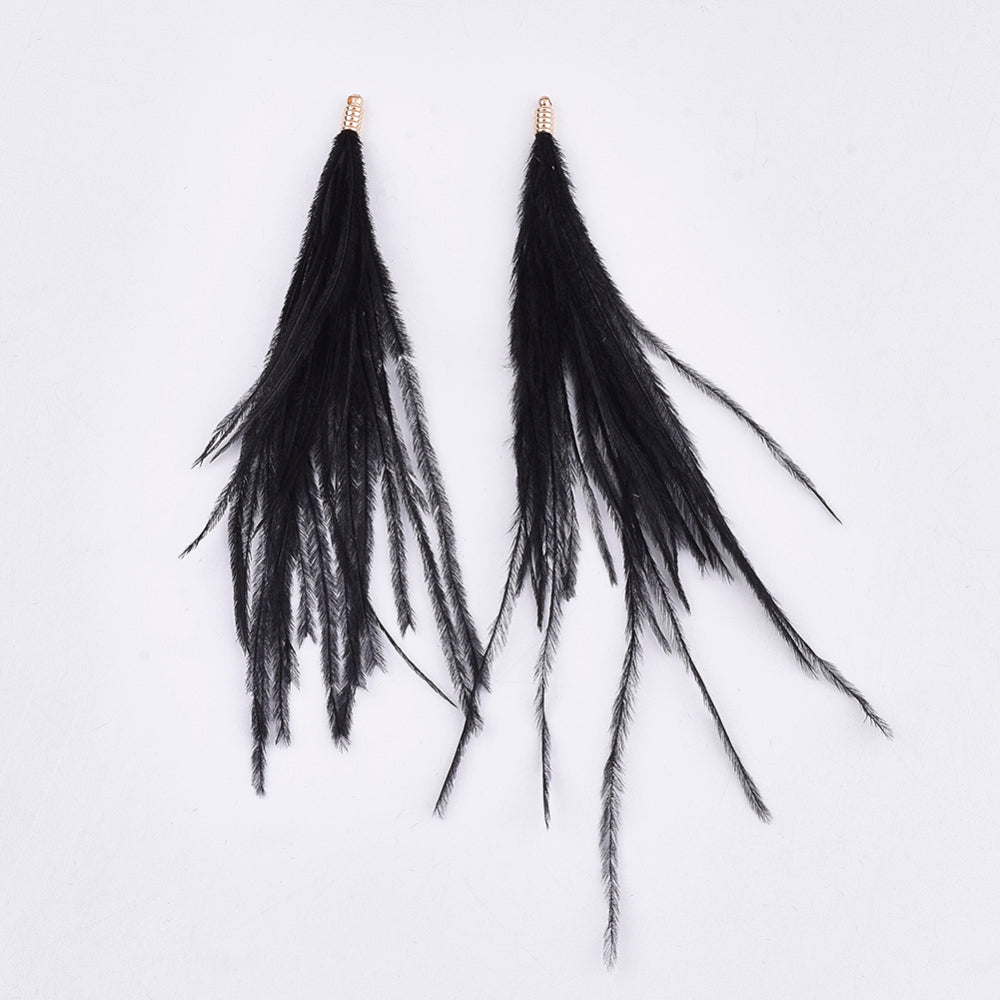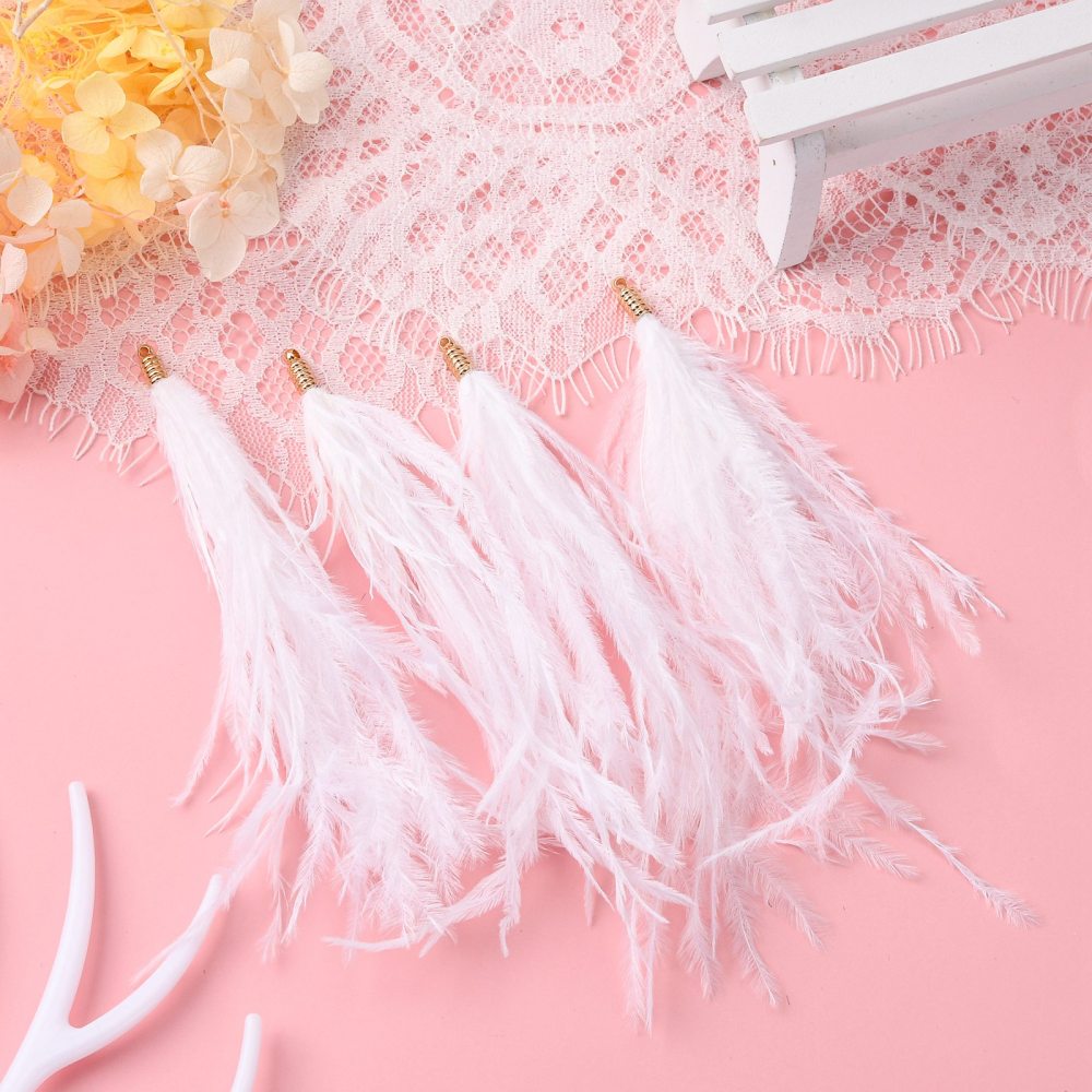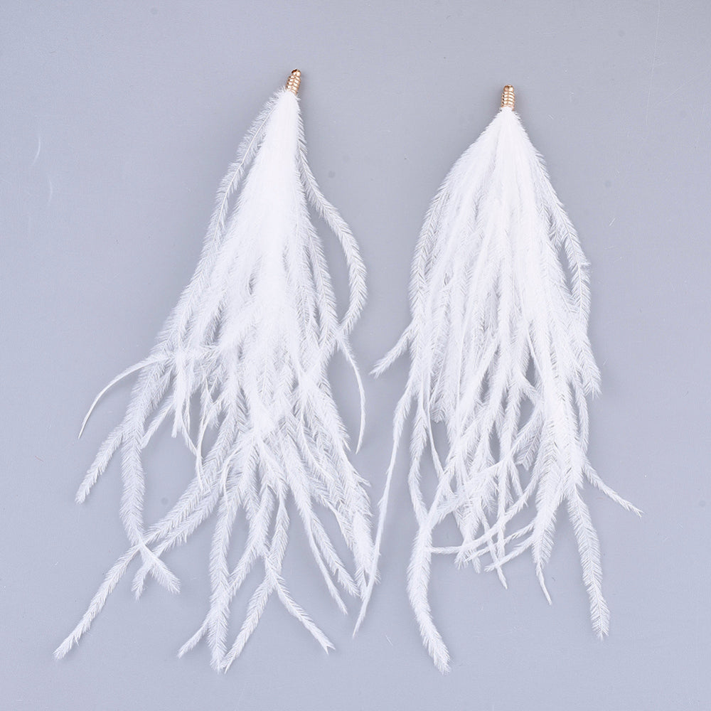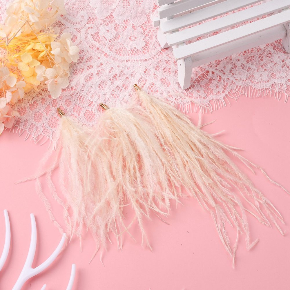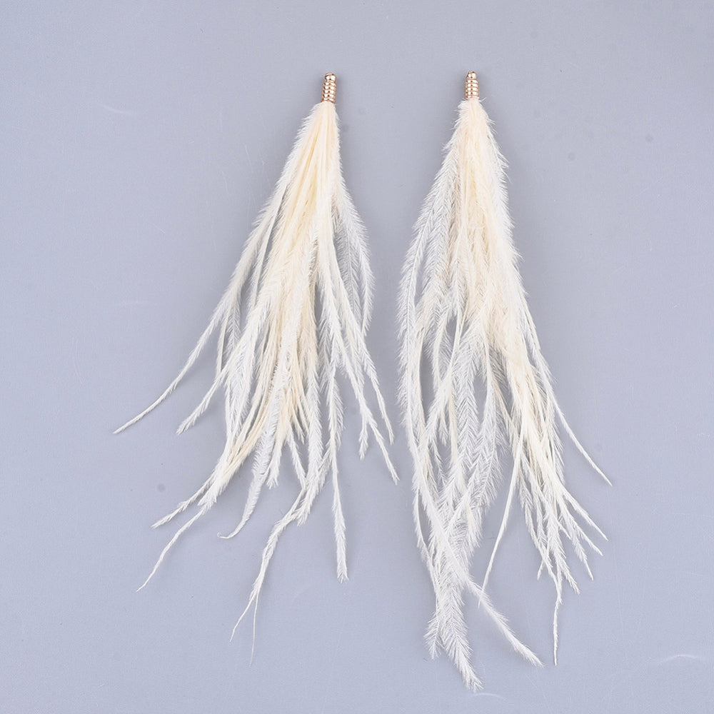 Natural 130mm Ostrich Feather Tassels - 2pcs