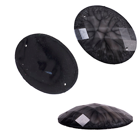 Resin Sew-on Crinkle Stone Oval 30x40mm Black